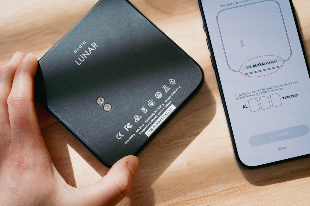 The upgrade is available beginning March 23, 2026 for compatible Acaia Lunar scales (USB-C, serial AL008XXXXXXXX or newer). The license is €100* (*may vary slightly by region).