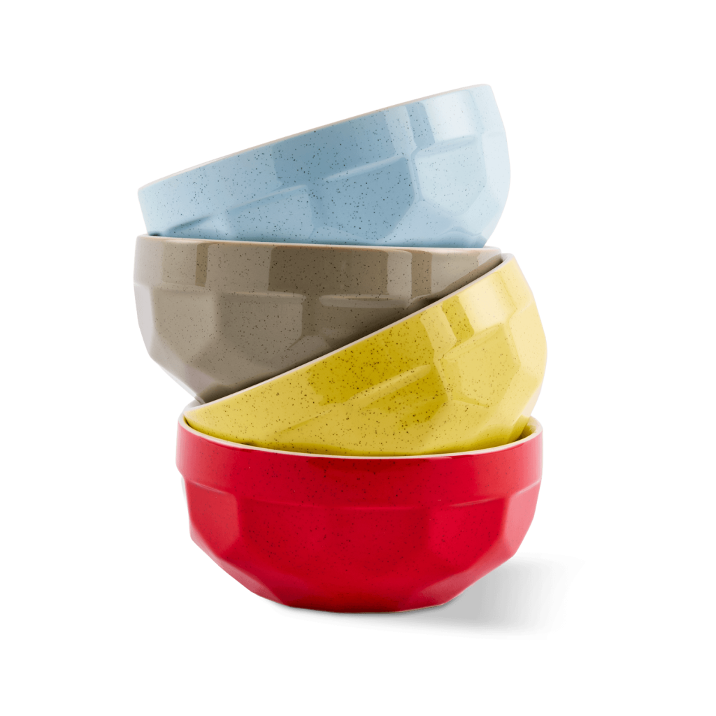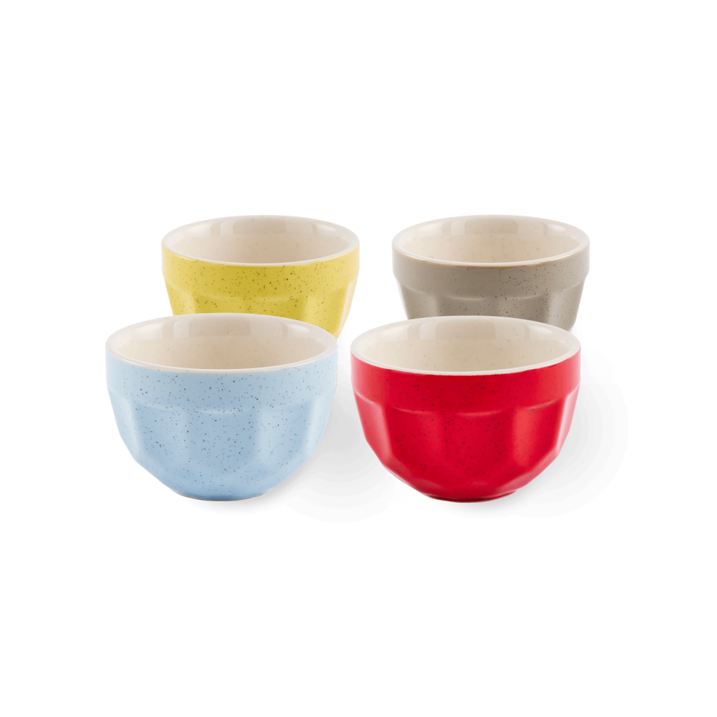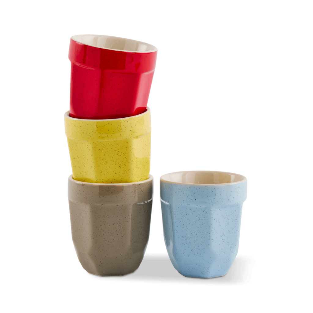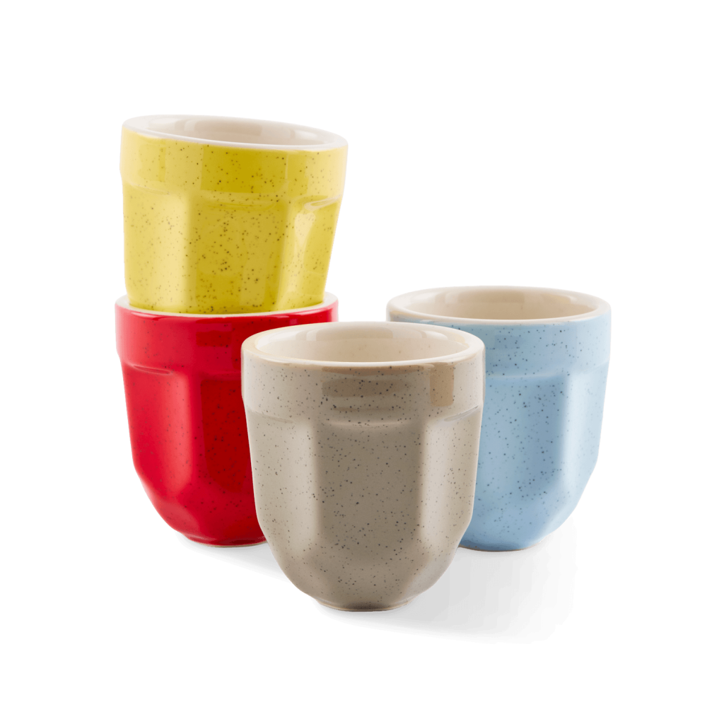 The faceted form references early La Marzocco machine designs from 1927, which have been translated into speckled glazed porcelain for the table. Packaged in sets of four, the colours of the ceramics have been selected with intention to compliment our range of Linea Mini and Linea Micra espresso machines.