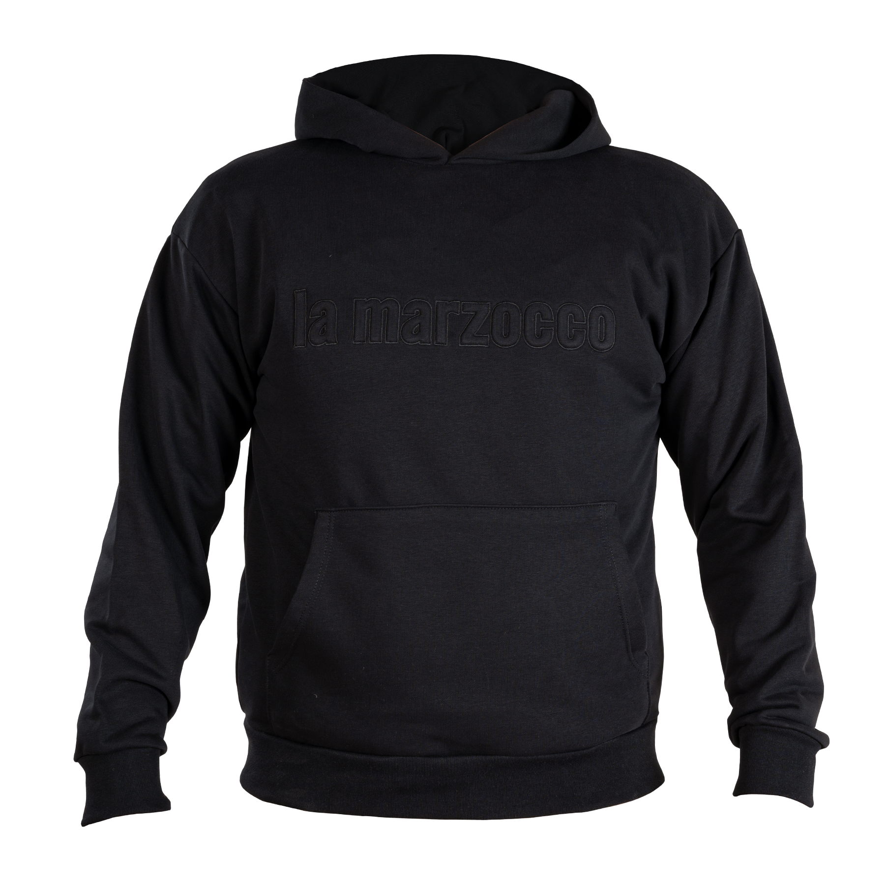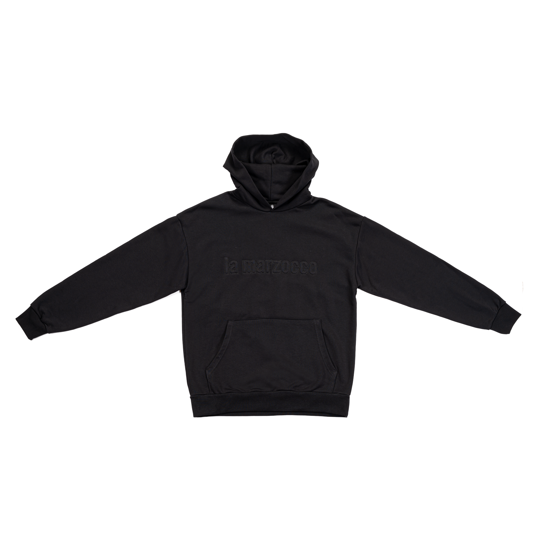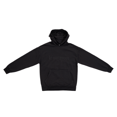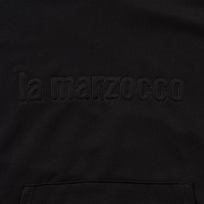Discover the perfect blend of style and innovation with our black hoodie, featuring a tonal 3D “lamarzocco” logo on the chest.