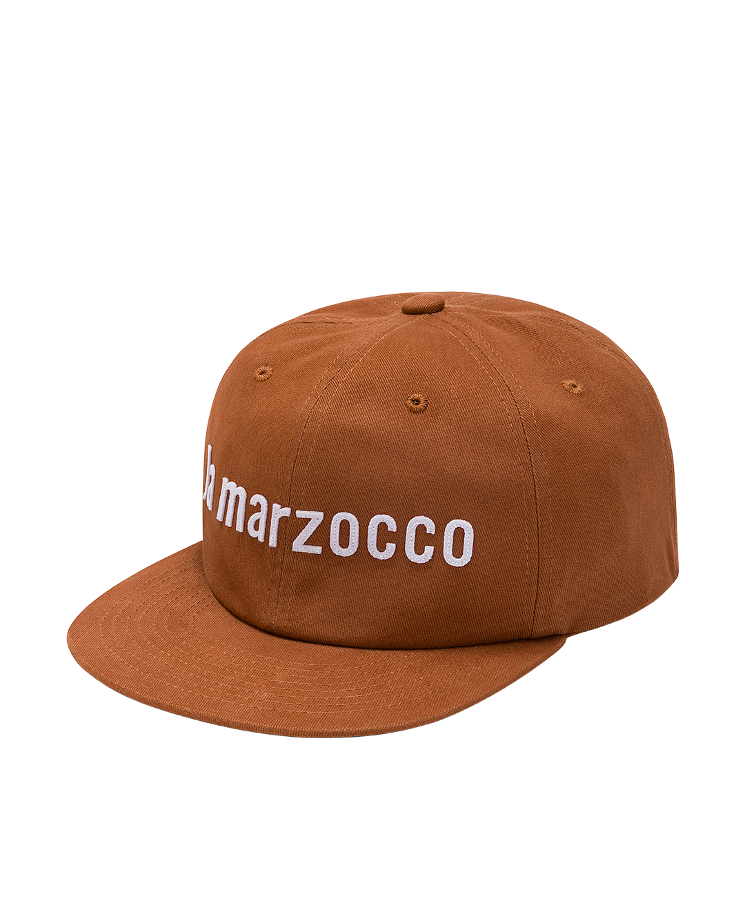Flat cap, organic cotton, felt appliqués and clasp back fit. A perfect fit when running out the door, add style to any outfit with this natural toned color and sick La Marzocco logo.