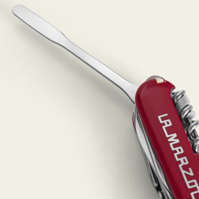 A precision-crafted multi-tool co-created by Victorinox and La Marzocco. Includes essential functions for espresso machine upkeep—like a steam wand nozzle remover, screwdrivers for common machine adjustments, and a coffee spatula—alongside classic Swiss Army Knife™ features. Compact, durable, and thoughtfully equipped for the professional and home barista.